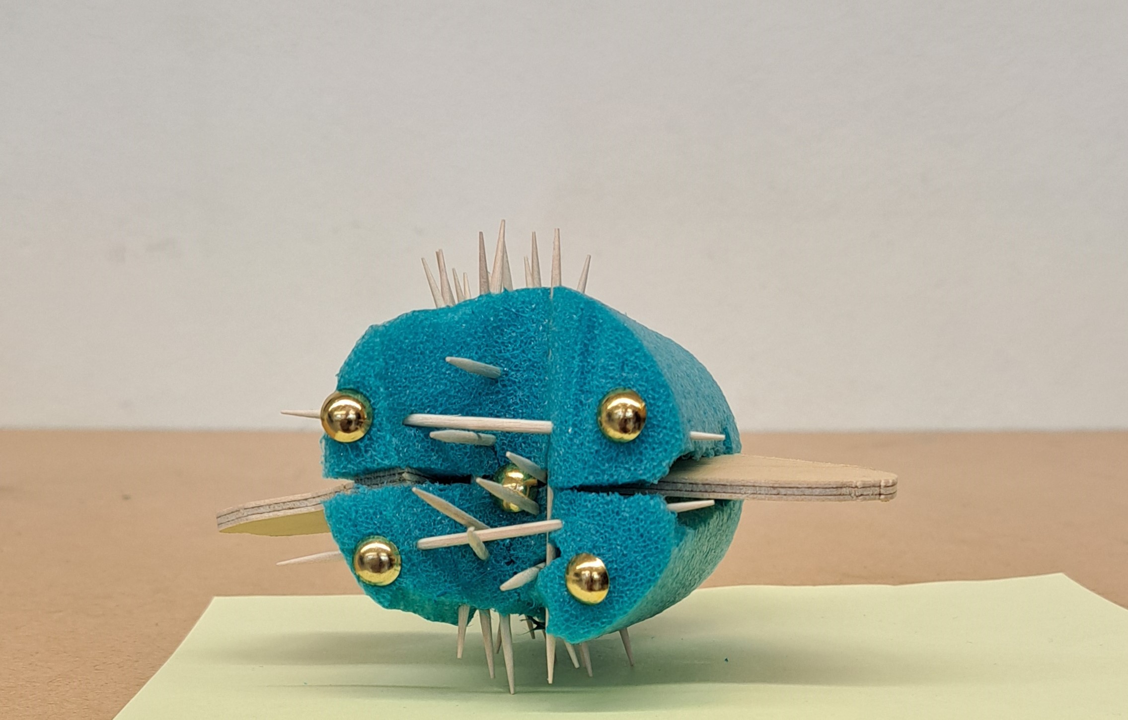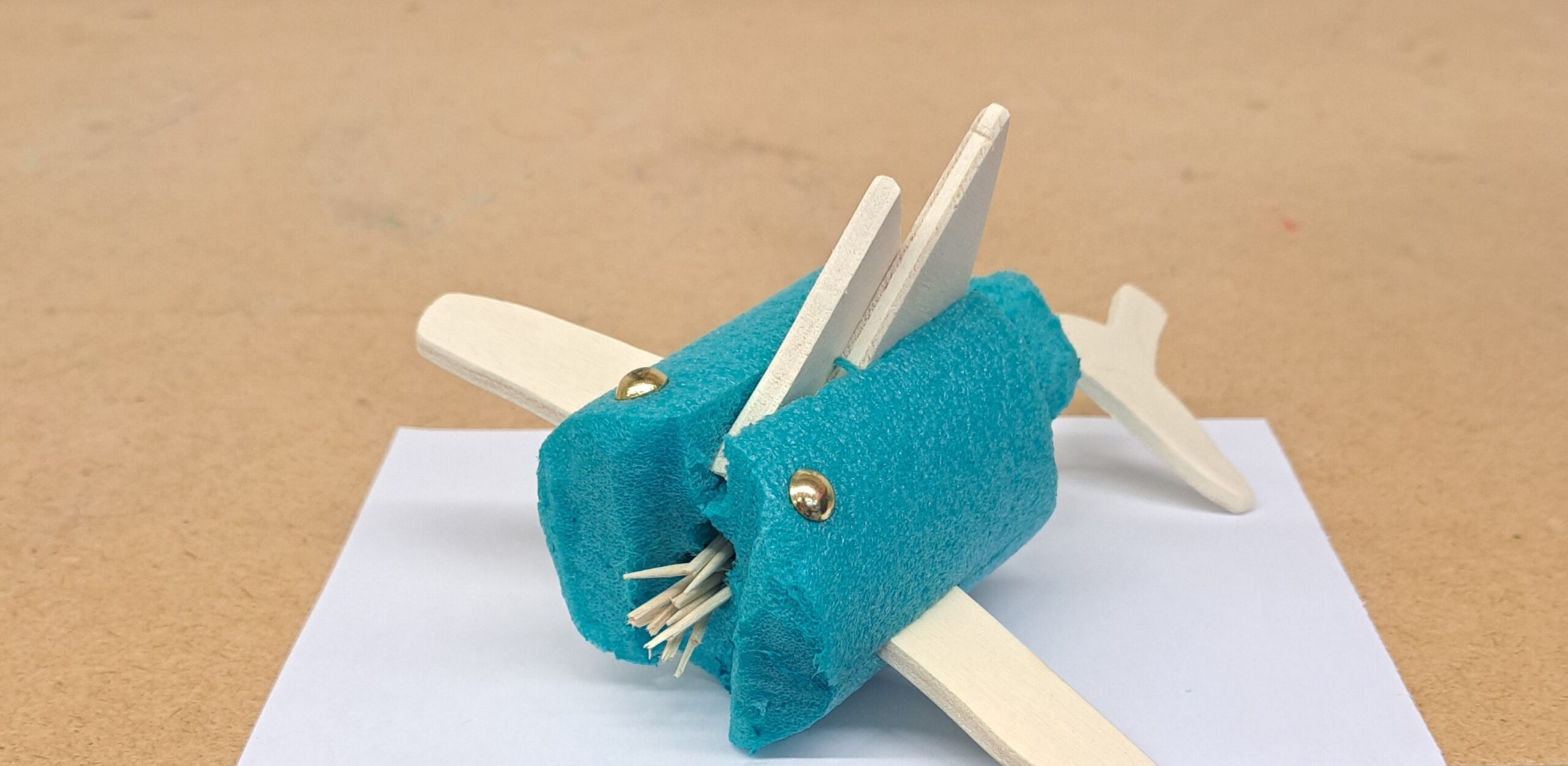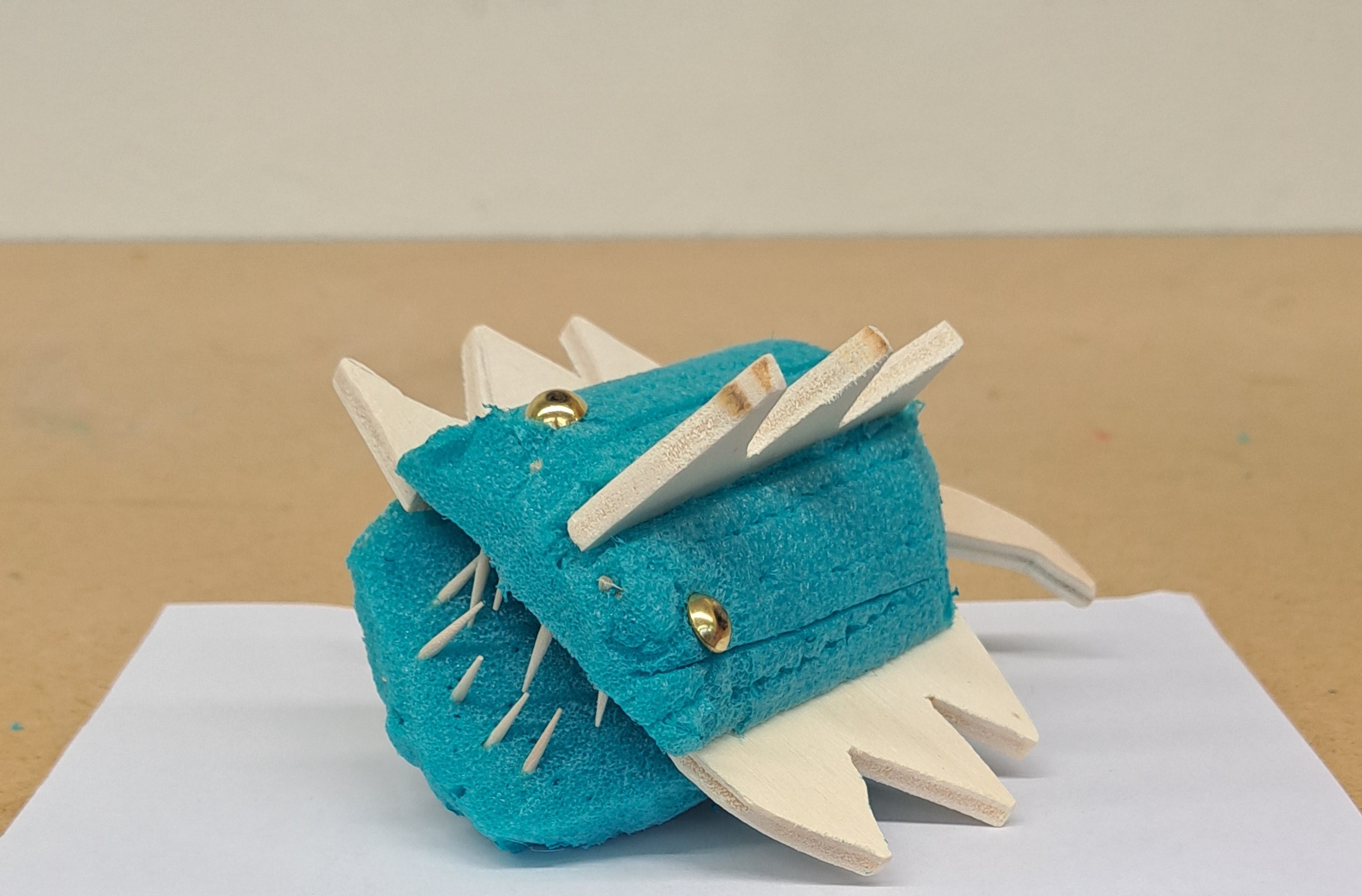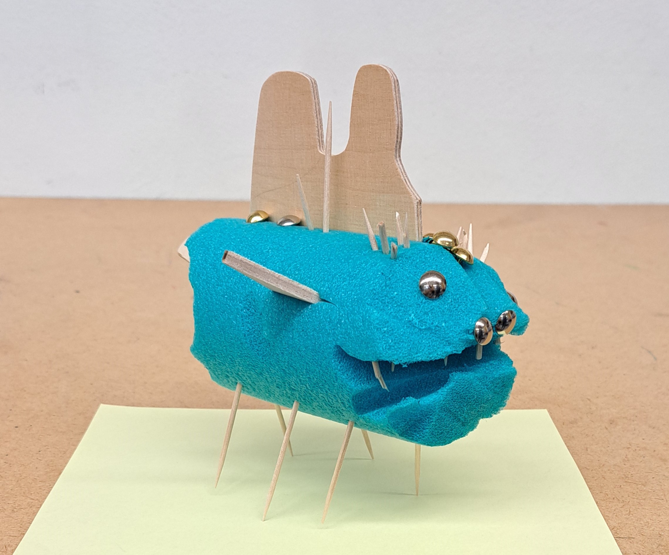 Nach dem Vorbild des Ungeheuers von Loch Ness haben die Schülerinnen und Schüler ihre eigenen Seeungeheuer erfunden. Mit der Thermosäge wurden die Poolnudel-Stücke bearbeitet und anschliessend mit Holz und Nägel besteckt.